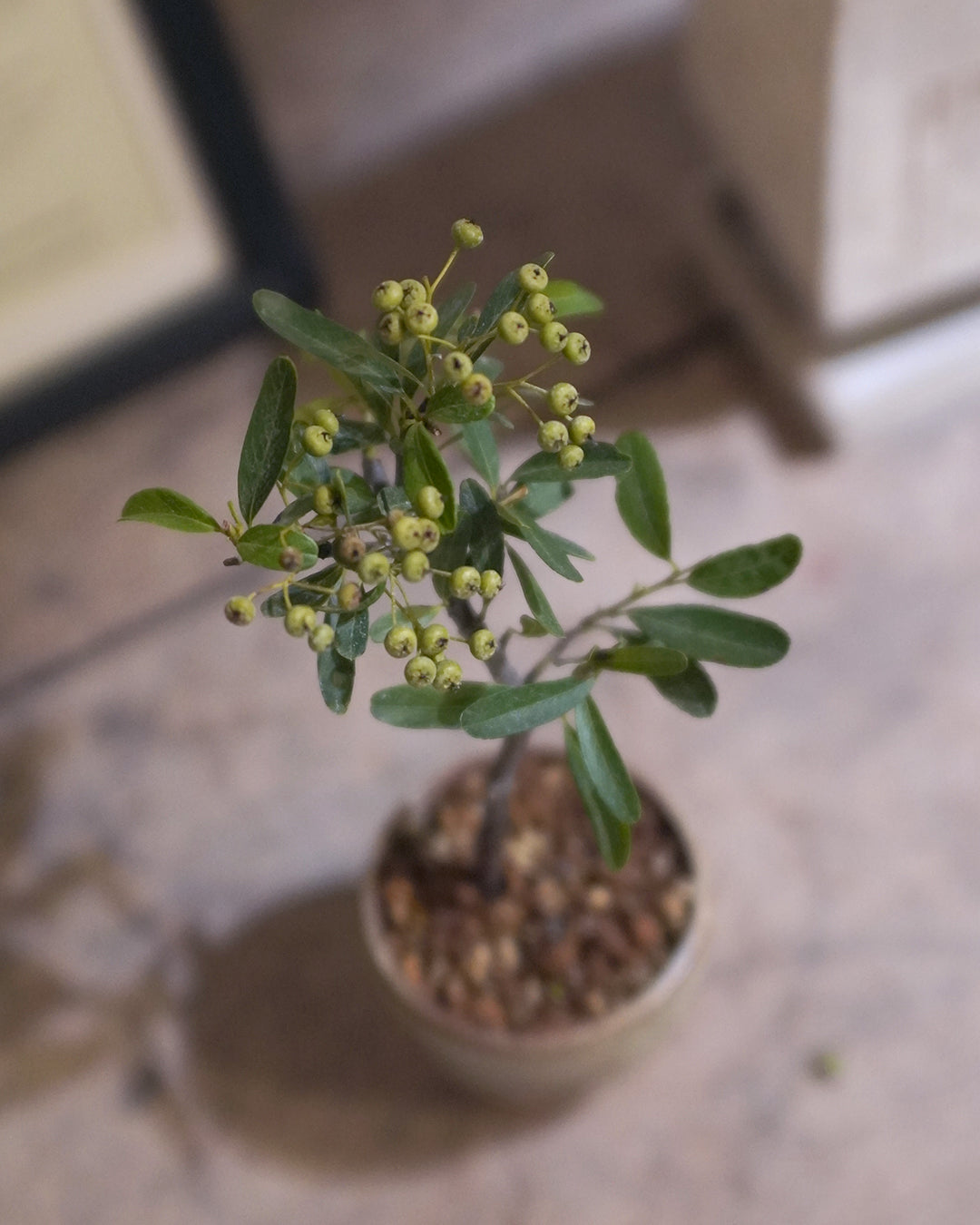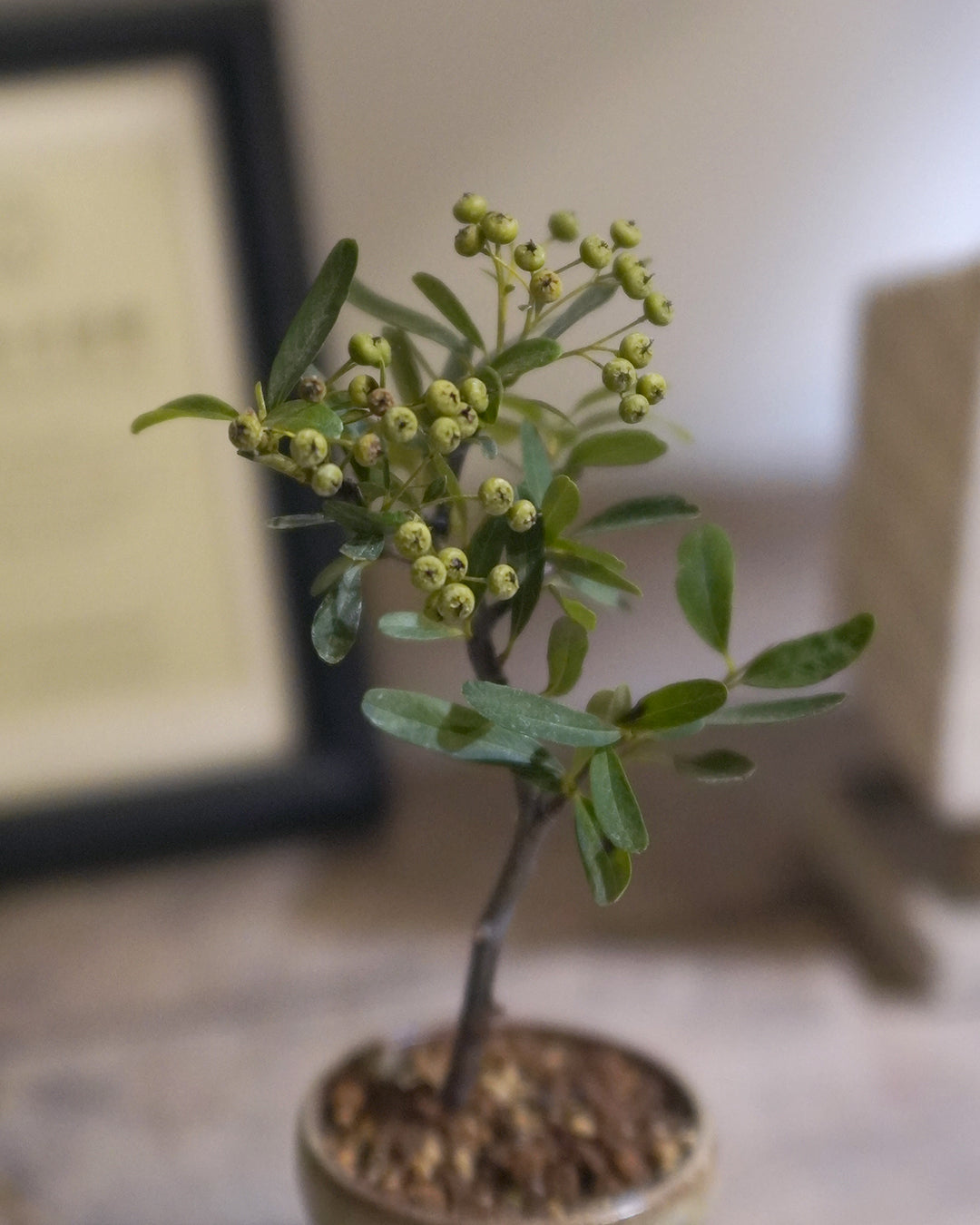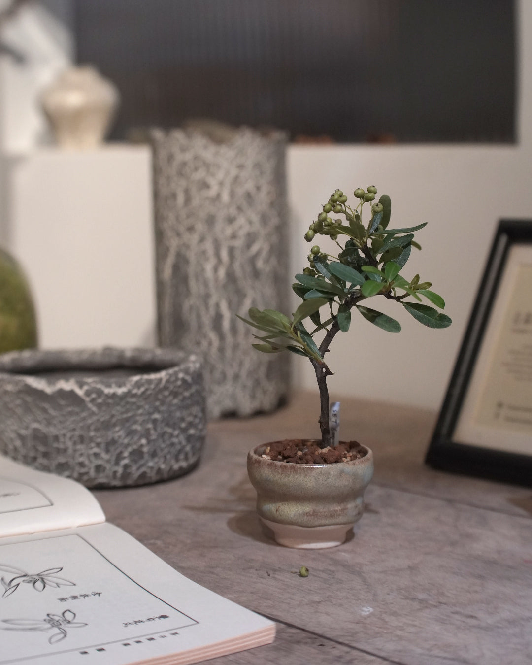 This time, 圓嘢 is introducing the stunning Firethorn bonsai! It's a deciduous bonsai that produces beautiful little white flowers and then bears fruit. Every April, it's covered in a spectacular display of tiny white blossoms, which are followed by fruit that gradually ripens from green to a brilliant red, looking just like a miniature apple tree.