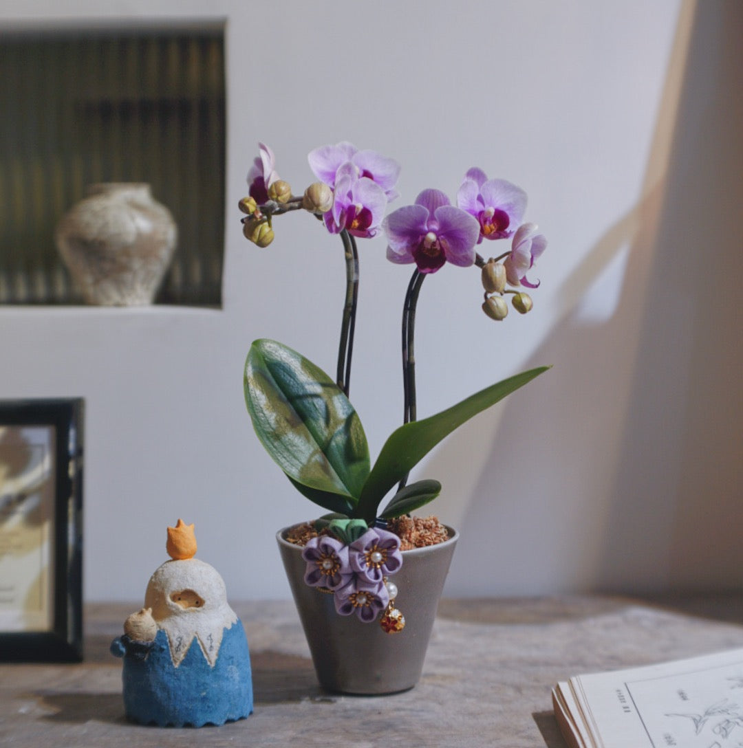 貂灰釉植木鉢 X 賀年蘭花 (2025CNY025)