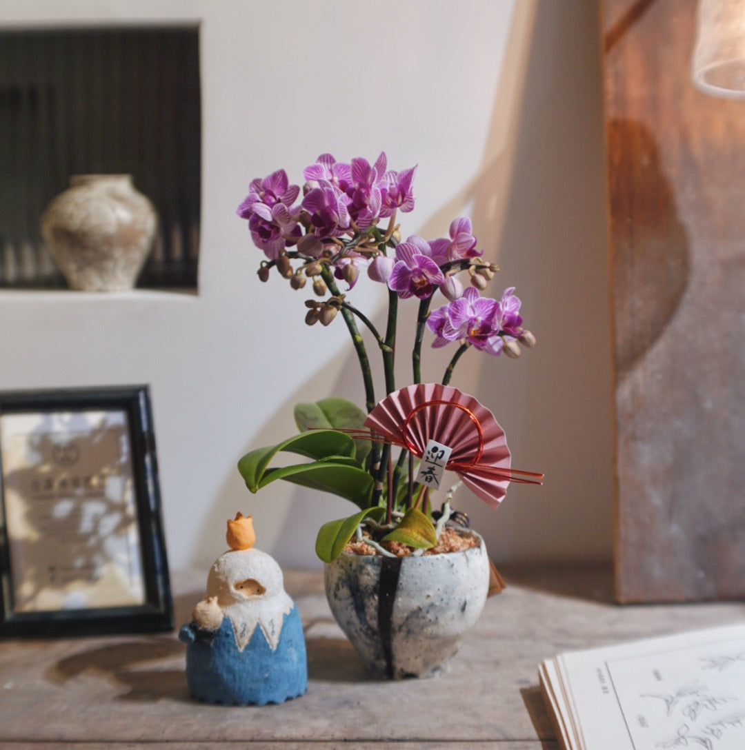 Sold out貂灰釉植木鉢 X 賀年蘭花 (2025CNY025)
