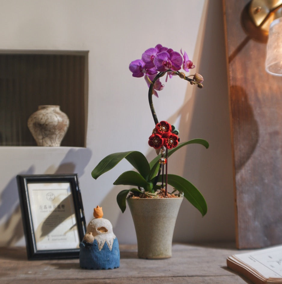 Sold out貂灰釉植木鉢 X 賀年蘭花 (2025CNY025)