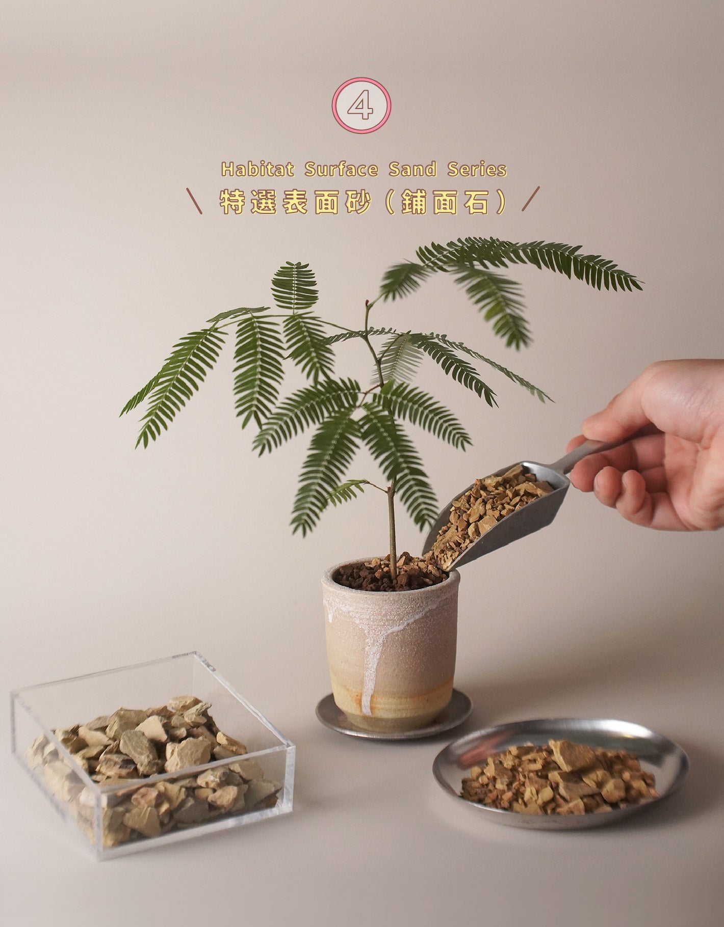 表面砂經過人工洗淨,殺菌處理,除了使植物有更美風格,特選的砂石更可反映盆內的水分情況,對植物的生長帶來正面健康!